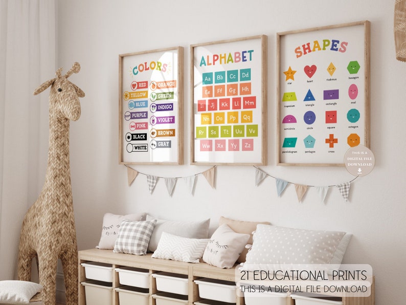 Beautifully designed vibrant Educational Printable Set of 21 is perfect as an decor for your home, office and classroom. Curated wall art prints to help you create a fun, cosy, engaging space for kids