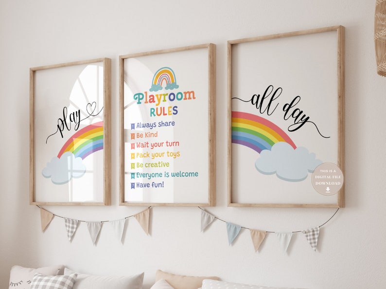 Preschool Educational Bundle Posters Set Playroom Rules Sign Kindergarten Classroom Decorations Decor Montessori Solar System Toddlers